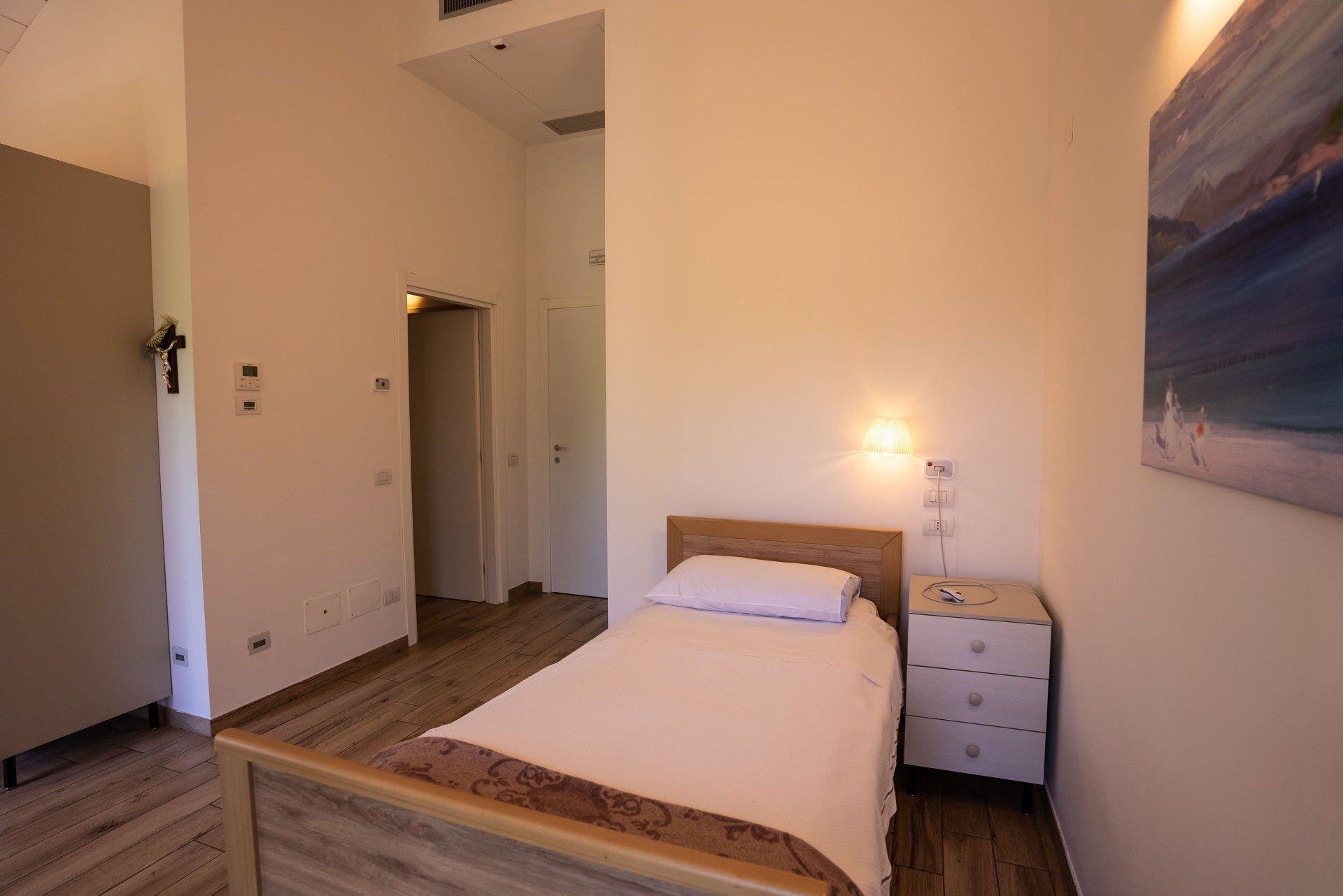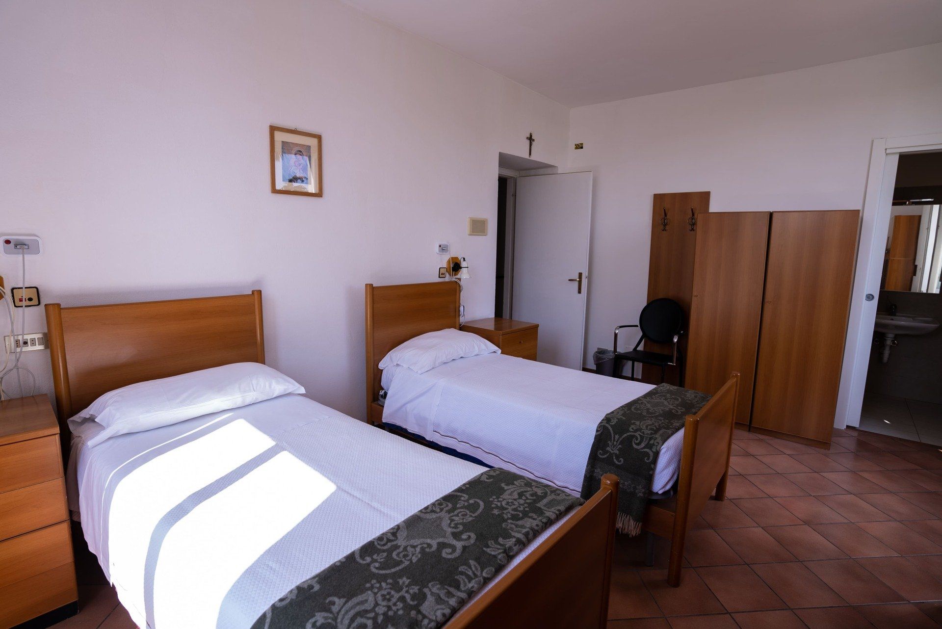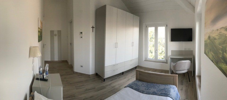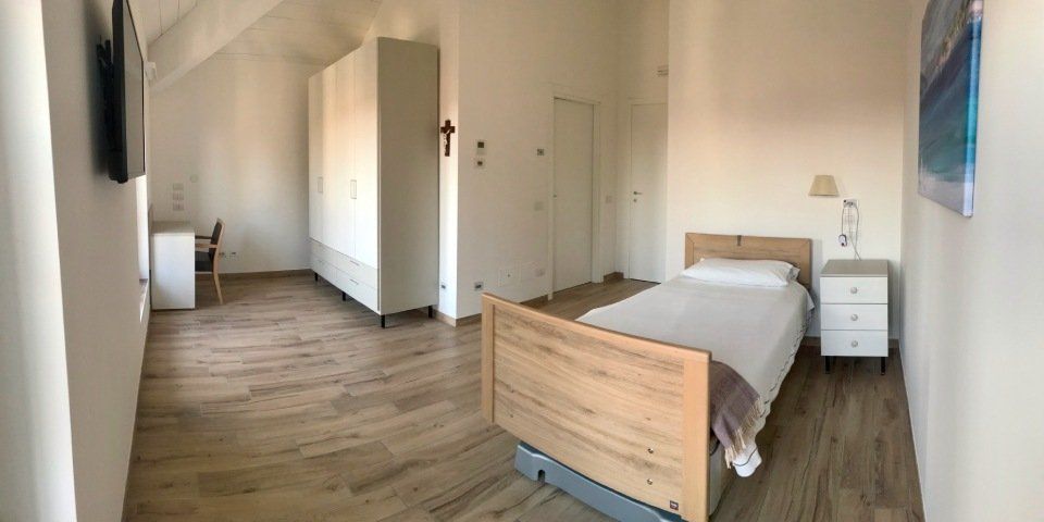Sfoglia la galleria immagini e lasciati ispirare dagli ambienti accoglienti e curati della nostra residenza. Ogni camera, singola o doppia, è pulita e igienizzata con la massima attenzione e dotata di tutti i comfort: bagno privato, pulsante di chiamata per l’assistenza, armadio, comodino con cassettiera, letto spazioso e televisore.